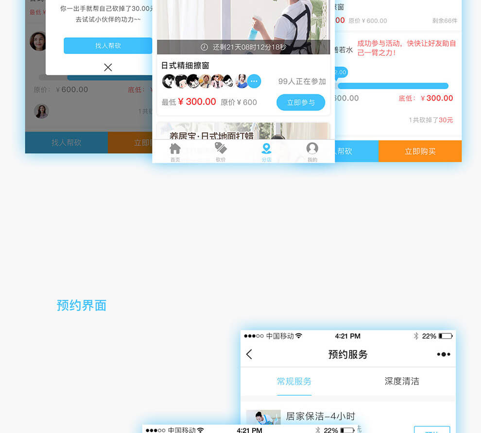 家政服务连锁版 分销(可选) 家政系统(秒杀、砍价、预约、手机端商家后台、分店长、服务生后台)!